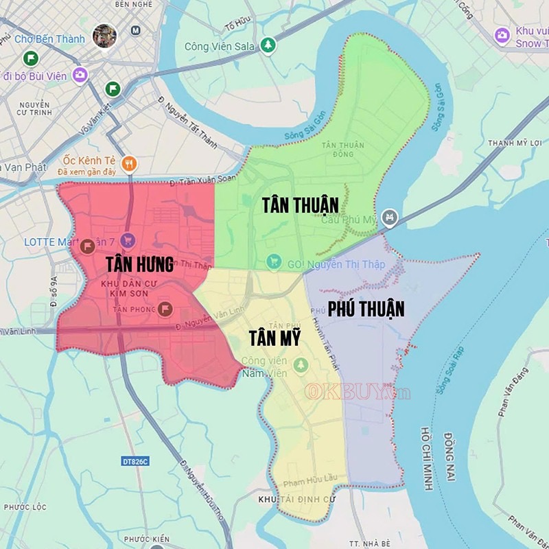 Phường Bình Thuận + Phường Tân Thuận Đông + Phường Tân Thuận Tây |